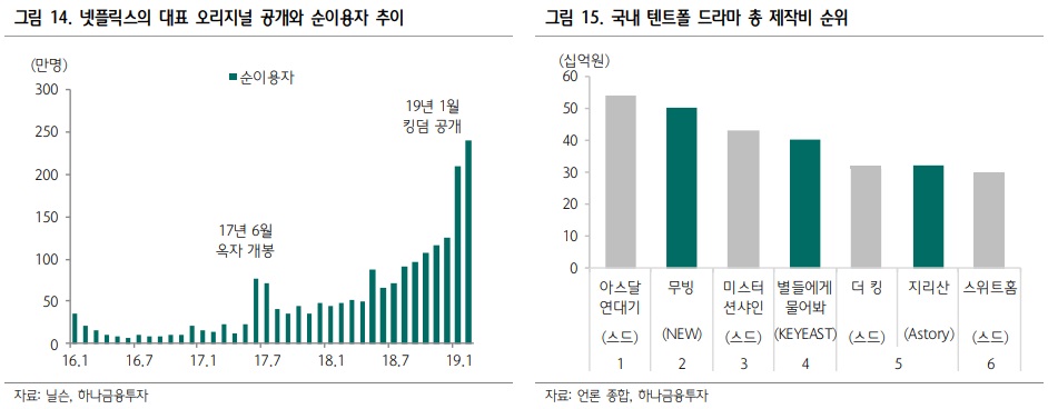 하지만, OTT 산업의 후발 참여자(혹은 경쟁자)들은 실탄이 많아도 너무 많은 디즈니+/애플TV+/HBO Max 등이고, 이들은 넷플릭스의 성공 방정식을 그대로 따라 할 것이다. 즉, 향후 2~3년간 한국에서 가장 큰(혹은 넷플릭스보다 더 큰) 제작비를 투입한 드라마 제작을 통해 한국 및 아시아 가입자를 확보할 것이다.