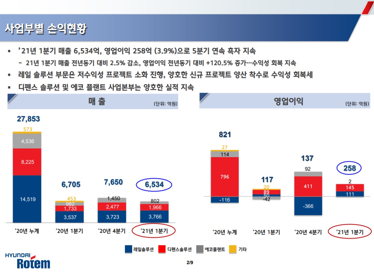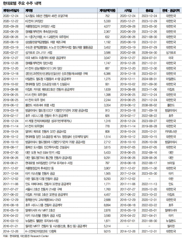 - 실적 개선세는 지속. KTX-이음을 포함, 국내 중고속 열차 확대 기조에 대한 수혜가 지속. 경쟁사는 전동차 위주로 GTX-A, B, C 노선에 대한 독점력 부각 - 현대차그룹 계열사로 수소 모빌리티(수소트램)와 밸류체인의 한 축을 담당 - K2전차 수출 가능성, 국내 방산 증가 등도 기대
