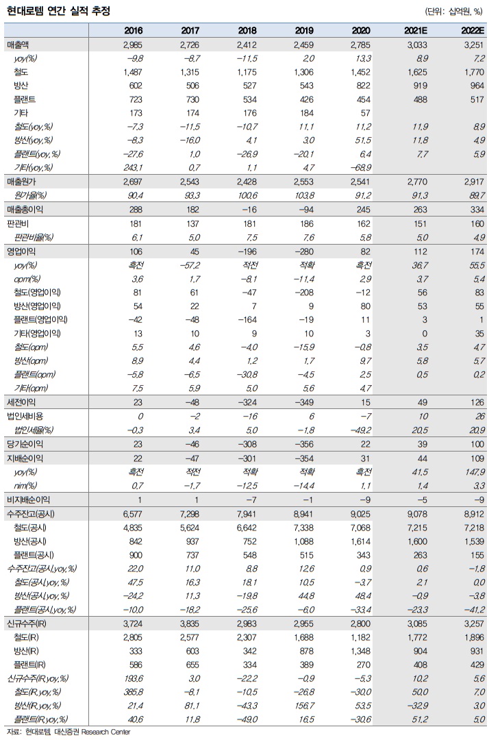방산부문은 2020년 장애물 개척전차의 양산을 진행하며, 플랜트부문은 제철소 수주경험을 바탕으로 턴키공사 진출을 준비 중에 있음.