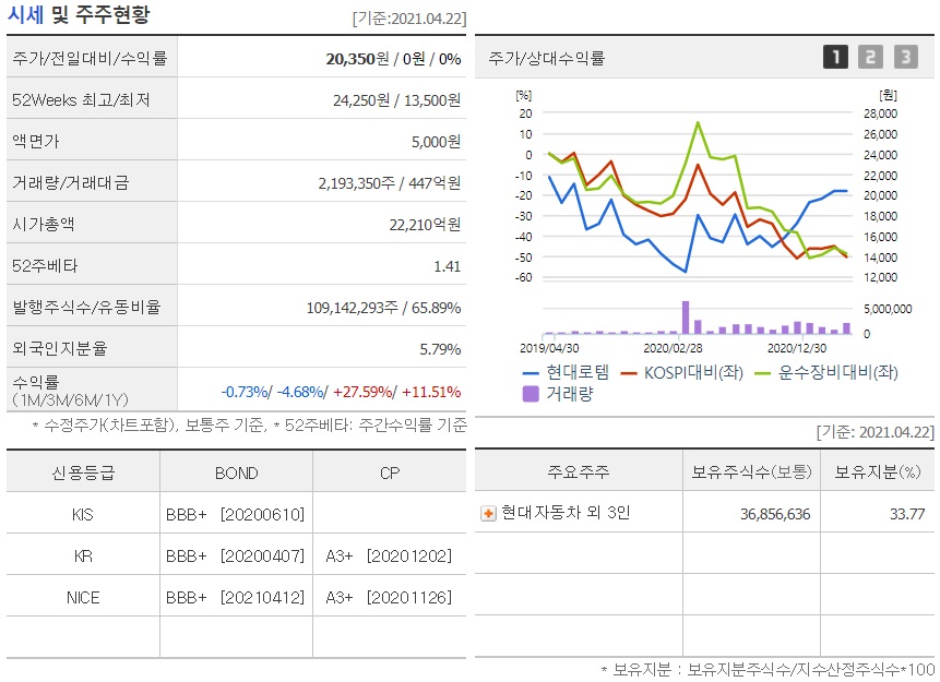[현대로템] 기업개요 동사는 현대자동차그룹에 속한 회사로서 철도사업, 방산사업부문 및 플랜트사업을 영위하고 있음.