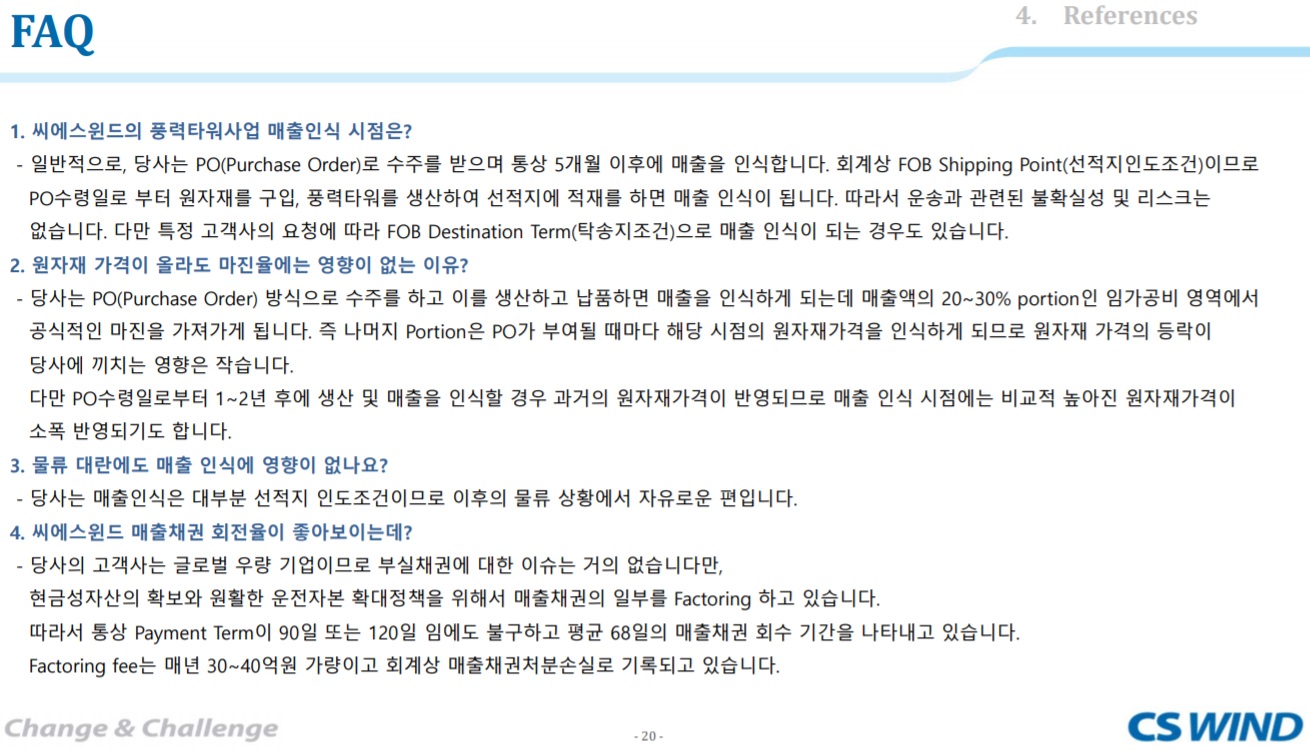 동사는 미국, 유럽, 호주 시장의 폭발적인 풍력 타워 수요에 대응하기 위해 과감한 설비투자 및 인력채용을 통해 생산능력을 대폭 증가시킴.