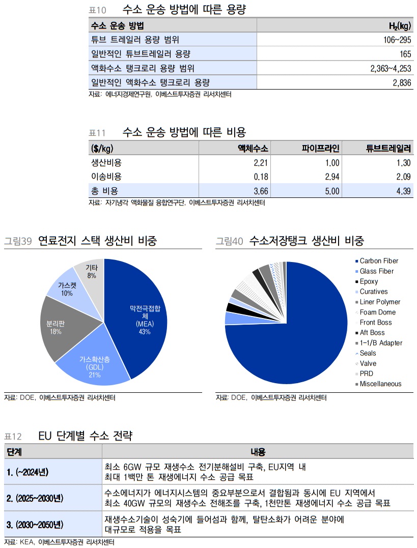 다만, 이번에는 수주와 정책효과가 동시에 있던 2020년과는 다르게 정책만으로 주가가 움직일 가능성이 높다. 이는 아직 수소경제 수요가 많지 않아 정책에 의해 일부 지역에 소규모 수주가 진행될 것으로 예상되기 때문이다. 특히, 완성차의 경우, 전기차 비중 확대 발표가 이어지고 있으며, 연료전지의 경우, 2020년 블룸에너지 SOFC 중심으로 수주가 대거 진행되었다.