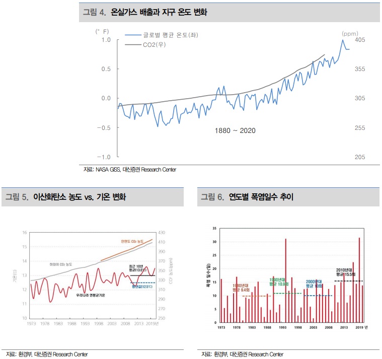 코로나19라는 유례없는 상황을 겪으면서 환경 문제에 대한 위기의식은 더욱 고조되었다. 주요국에서 환경 규제가 강화되고 있는 이유다. 지난 4월 기후정상회의에서도 온실가스 감축, 배출권 거래 제도 확대 등에 대한 논의가 이뤄졌다. 인류의 발전과 함께 지구 온도 역시 상승세를 경험했다. 앞으로의 작은 변화는 되돌릴 수 없는 결과를 야기할 수 있다. 환경과 관련한 문제는 이제 더 이상 선택이 아닌 필수의 영역이라는 뜻이다.