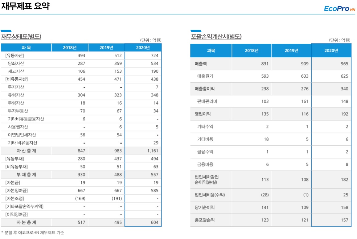 [에코프로에이치엔] 기업개요 동사는 '에코프로' 에서 인적분할되어 2021년 5월 27일 재상장함.