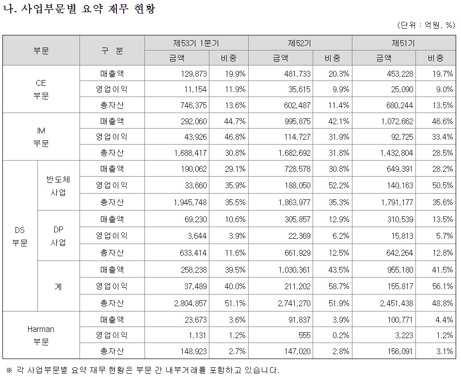 IM (Information technology & Mobile communications) HHP(스마트폰 등), 네트워크시스템, 컴퓨터 등
