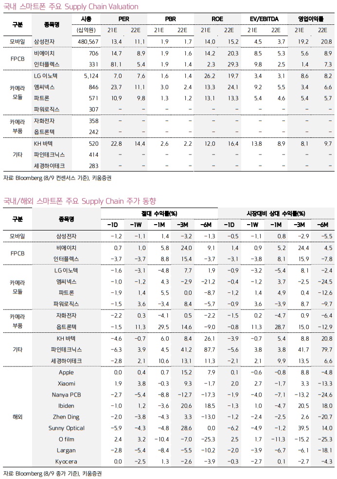 스마트폰 성장 둔화되는 가운데 카메라 모듈과 폴더블 관련 업체를 주목하고 계시네요. 갤럭시 Z 폴드3, 갤럭시 z플립3 가 공개되며 스마트폰이 다시 주목받는 듯한 분위기인데 관련해 투자 아이디어를 얻어가셨으면 좋겠네요.