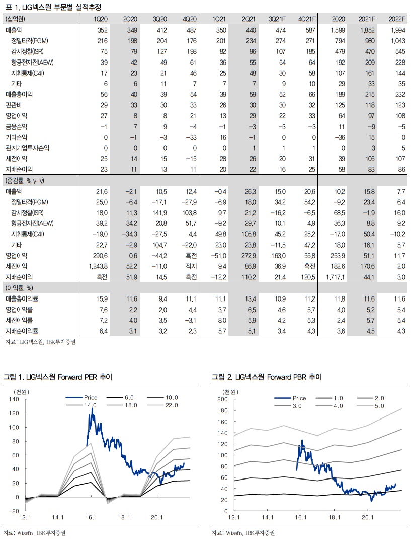 LIG넥스원에 대한 매수의견을 유지하며, 목표주가는 65,000원으로 상향한다(기존 55,000원). 과거 5개년 PBR 평균치 1.93배를 적용했다. 목표주가 대비 Implied PER은 17.1배 수준이다.