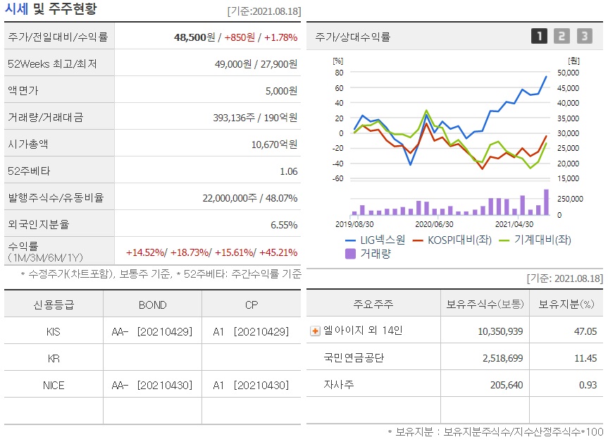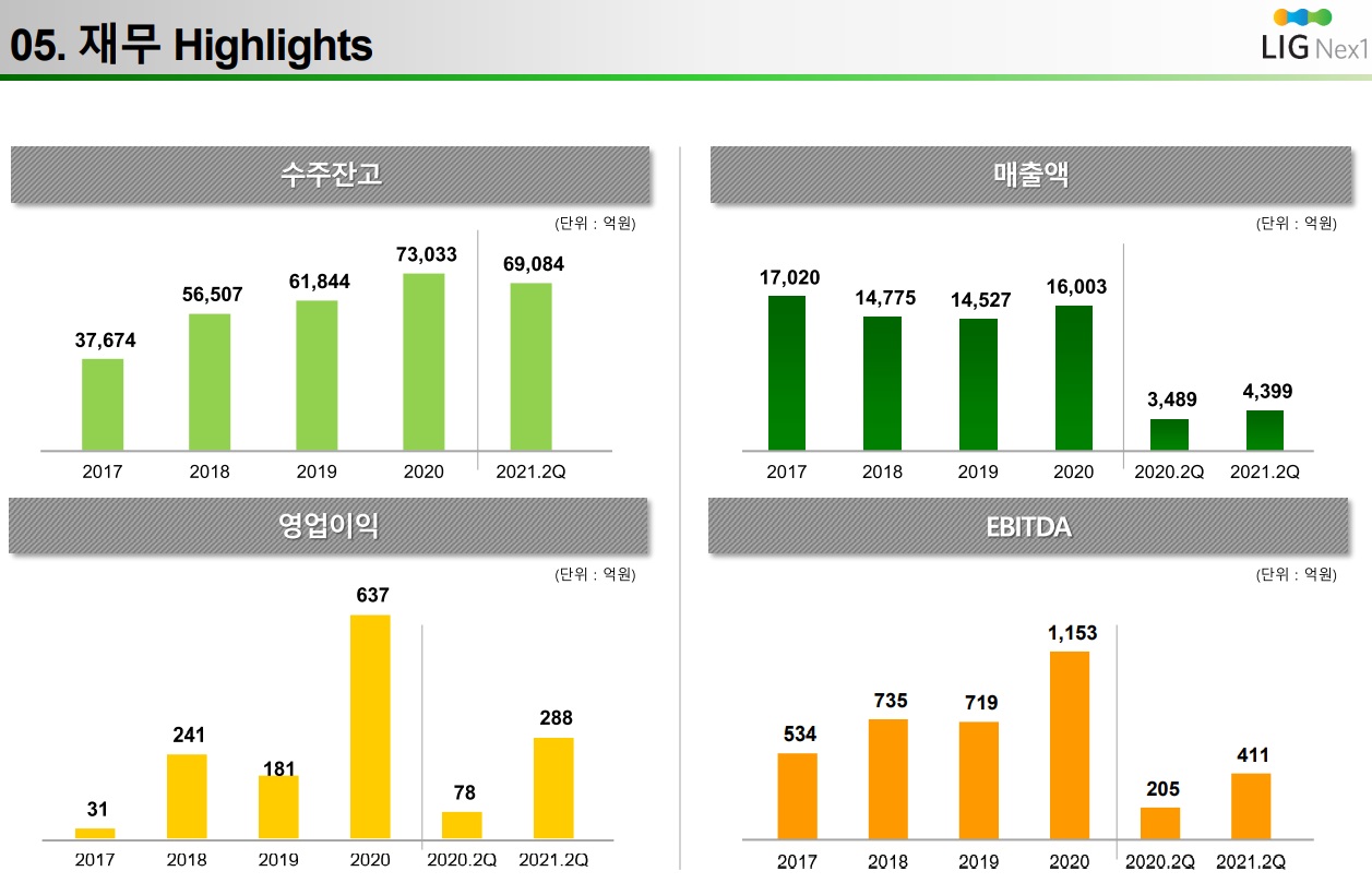 이에 따라 2021년 연간 매출액 1.85조원(+16% yoy), 영업이익 968억원(+51% yoy), 영업이익률 5.2%(+1.2%p yoy)로 전망된다. 늘어나는 수주잔고를 바탕으로 외형 증가와 첨단무기체계 강화에 따른 수익성 향상이 기대된다.