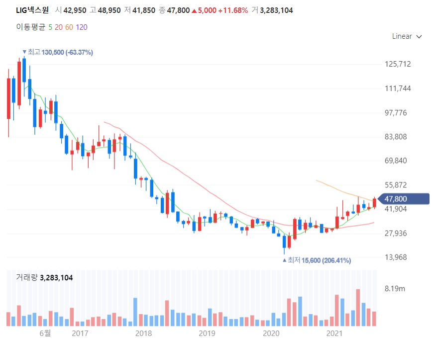2분기 실적과 더불어 국방 중기계획, 수주잔고를 이유로 목표주가를 상향했네요. 대부분 증권사들도 긍정적으로 보며 저평가라 판단하는 듯합니다. 최근 한미연합훈련을 북한 측에서 비난하며 관심을 받기도 했었죠? 어쨌든 길게 보면 주가는 조금씩 우상향 하긴 했었네요. 다만 상대적으로 시장의 관심을 받을 가능성이 낮기에 이 점은 약간 아쉽네요.