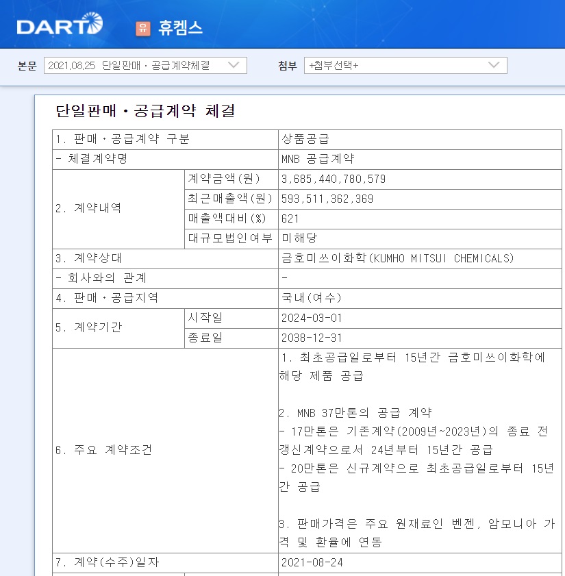 참고로 고객사 금호미쓰이는 지난 4월 20만톤/년 규모의 MDI 증설을 공시