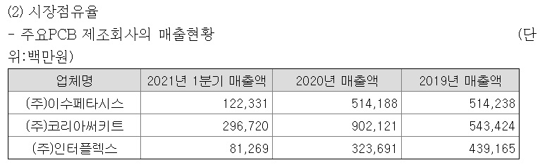대구광역시에 공장을 운영하고 있으며, 코리아써키트, 인터플렉스 등이 주요 경쟁사임.