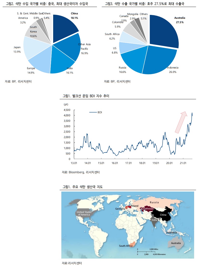 그러나 최근 초강세가 이어지고 있는 벌크선 운임가격을 감안하면 해상운송을 통해 운반되어야 하는 남아공, 인도네시아 물량이 대폭 늘어나기는 제한적이다. 이제 중국에게 남은 카드는 러시아, 몽골 정도에 그치는데 중국 내 생산량 감소와 최대 수입국이었던 호주산 수입물량을 모두 채울 수 있을 것인가에 대한 의문이 남는다.