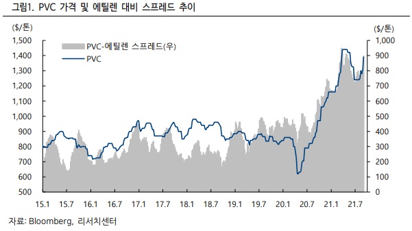 2021~2023 년 글로벌 PVC 증설규모가 평균 100 만톤에 그치는 것도 중국 내 신규설비 증설이 제한적이기 때문이다. 연간 PVC 수요가 평균 250 만톤 내외 증가함을 고려하면, 중국 석탄 가격 상승으로 글로벌 PVC 시황의 구조적인 수급밸런스 개선이 이루어질 수 있어 긍정적으로 전망한다.