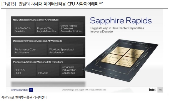 이보다 기대를 걸고 있는 제품은 2022년 2분기 양산 예정인 데이터센터용 CPU인 사파이어래피즈(Sapphire Rapids)다. DDR5의 가장 큰 특징은 대역폭이 최소 50% 이상 커져 시스템의 성능이 향상되는 것인데, Client PC에서는 일부 고성능 게임이나 그래픽 작업을 제외하고는 불필요한 것이다. 하지만, 사파이어래피즈에서는 DDR5가 데이터센터에 걸맞는 성능을 내줄 것으로 기대된다. AMD도 2022년 상반기 내에 Zen4 기반의 신규 CPU를 출시할 예정인데, 이 역시 DDR5를 지원할 것으로 전망된다. 따라서, 내년 1분기 말, 늦어도 2분기 중에는 서버 디램 수요가 되살아날 것으로 판단된다.