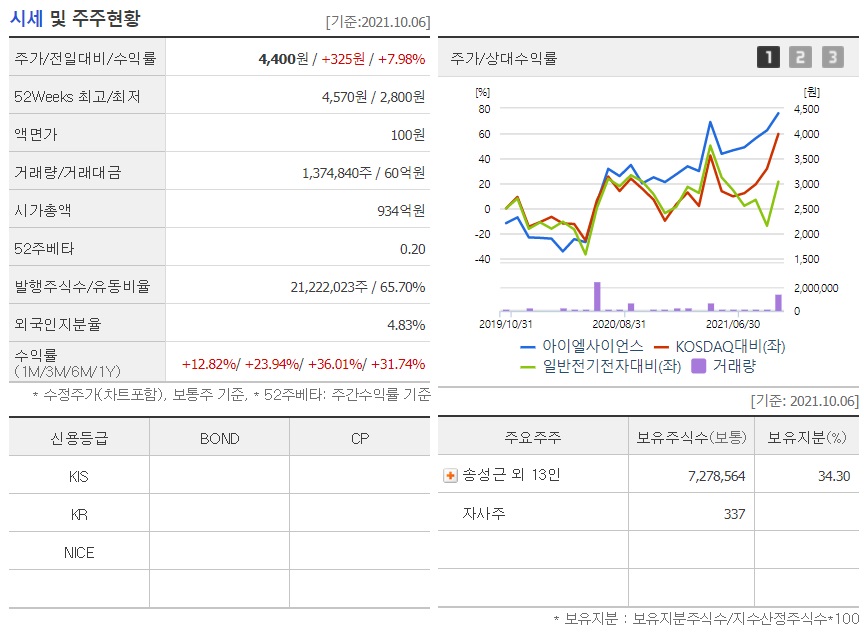 [아이엘사이언스] 기업개요 동사는 고효율 LED 조명 및 관련 광학기구 및 LED 미용 및 의료기기 등의 제품 개발 및 생산, 판매를 주요 사업으로 영위.