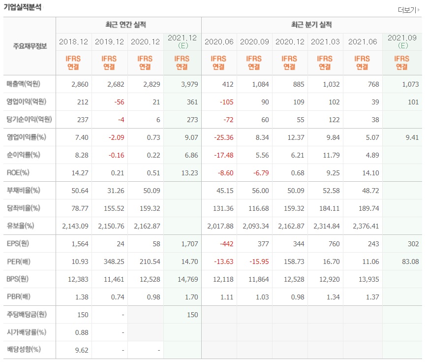 2021F(F = Forecast) 2021년 실적 전망치