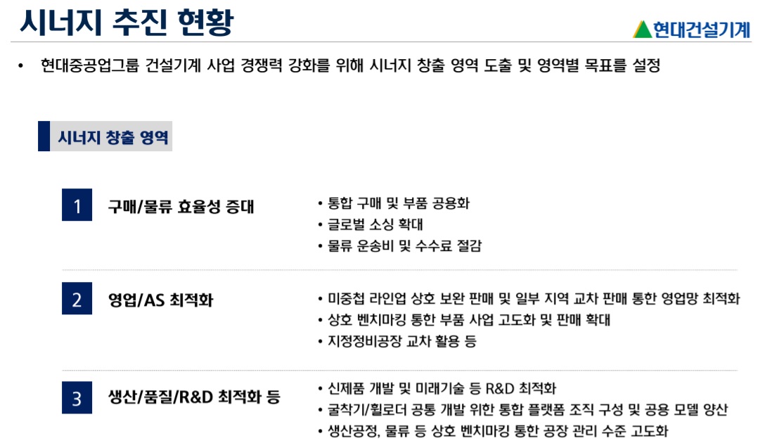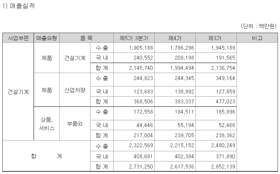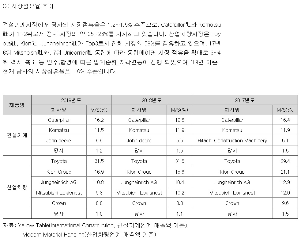 건설기계 산업의 시장침체가 새로운 성장 사이클에 접어들면서 현지화 모델, 전략적 제휴 등을 통한 신흥시장, 주력시장에서의 판매확대를 추진하고 있음.