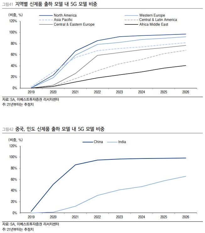 중국의 경우 지속적인 수요 부진이 나타나고 있으며, 배경으로는 코로나 이슈와 별개로 1) 5G로 인한 ASP 상승, 2) 5G에 대한 소비자 실망과 그에 따른 소비심리 하락, 3) 빅테크 기업 규제, 4) Huawei의 몰락 등이 있다. 특히 한국과 마찬가지로 5G 가입자는 증가하지만 커버리지와 사용자경험 등 만족도 측면에서 기대감을 충족시켜주지 못하고 있는 상황이다. 불안정한 네트워크와 킬러 콘텐츠의 부재로 인해 쓰면 쓸수록 기존 4G 서비스와의 차별점을 찾지 못하고 있다는 것이 가장 큰 배경으로 지목된다.