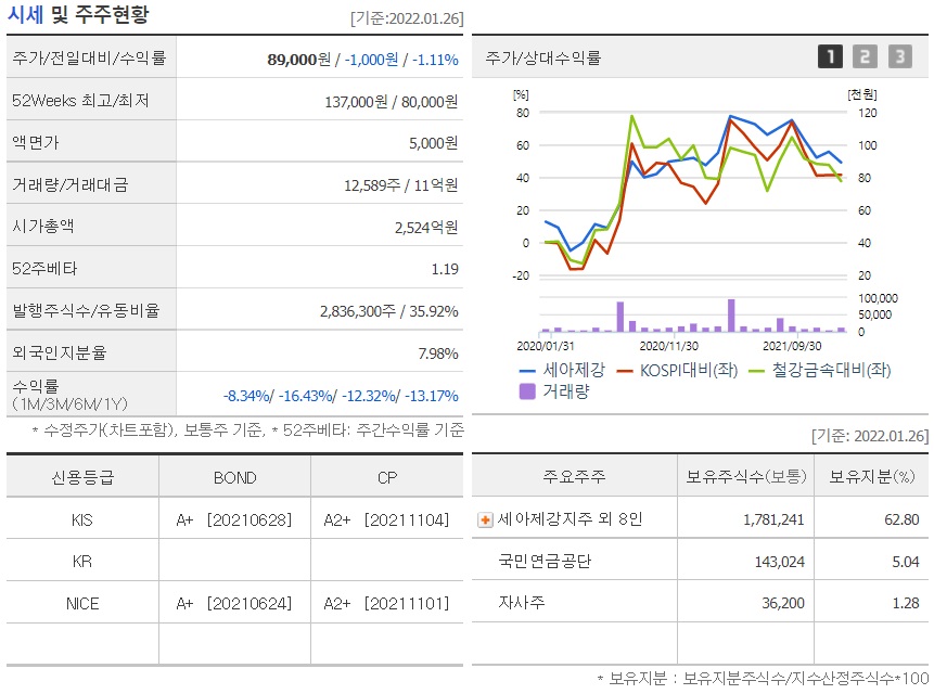 [세아제강] 기업개요 주식회사 세아제강지주(구, 주식회사 세아제강)가 영위하는 사업 중 강관제조 및 판매 사업부문을 인적분할해 설립된 분할신설법인임. 막대한 자본투자가 소요되는 자본집약적 장치산업임.