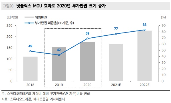 당사는 이를 통해 신작의 가치가 크게 상승할 것으로 예상한다. 2022년 중국을 제외한 전세계 판권을 OTT에 판매할 때 최대 80%가 리쿱된다. 이는 국가별로 가치를 쪼갤 수 있는데 판권의 가치가 높게 측정되는 지역은 1) 인구수가 많고 2) 지역 내 한국 드라마의 소비가 많다는 특징을 가진다.