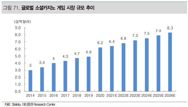 최근 국내 게임사들이 해외 진출을 위해 소셜카지노 게임 투자에 적극적인 행보를 보이고 있다. 더블유게임즈가 2017년 미국 소셜카지노 게임 개발사 Double Down Interactive(DDI)를 약 1조원에 인수한 이후 2021년 8월 DDI를 나스닥에 상장시켰다. 이외 넷마블은 글로벌 3위 모바일 소셜카지노 게임사인 SpinX Games를 인수했다. 넷마블은 이미 미국 매출 비중이 전체 매출에서 상당한 부분을 차지하고 있다. 스핀엑스 인수로 인한 미국 내 입지가 더욱 공고해질 것으로 기대된다.