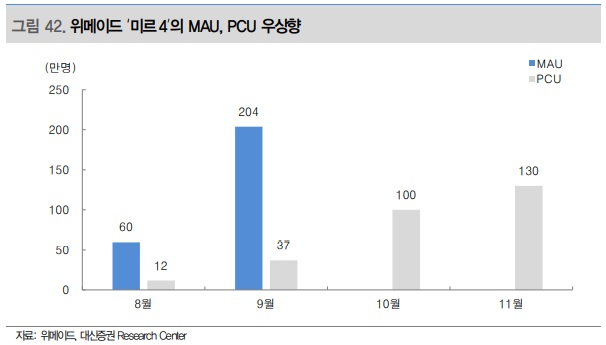 다시 MMORPG로 돌아오면, 한국의 MMORPG는 국내에서 양산형 게임이란 질타를 받고 있기는 하지만, 쉽게 개발되는 P2E, NFT 게임에 비하면 하이퀄리티 게임으로 게임성이 우수하다. 이들 게임 전체에서 ‘미르4’의 게임 순위가 높은 상황은 아니다. 하지만 8월 출시 이후 지금까지 꾸준히 플레이되고 있고, MAU(월간 활성 이용자 수), PCU(최고 동시 접속사 주) 등의 지표는 꾸준히 우상향하고 있다.