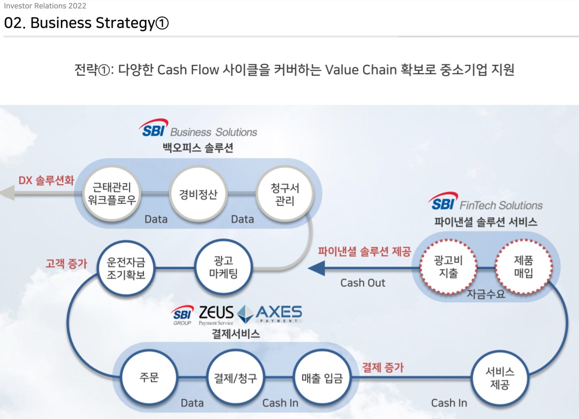 [SBI핀테크솔루션즈] 기업개요 동사 사업 부문은 결제서비스 부문, 국제송금을 제공하는 개인머니서비스, 백오피스 솔루션을 제공하는 기업지원서비스 등으로 나뉨.