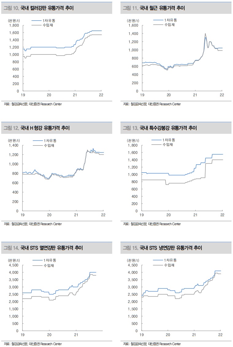 2022년 국내 철강재 수요는 전반적으로 2021년보다 성장세가 나타날 것으로 판단되고 있으며, 일부 변수는 있으나 흐름을 깰 정도는 아니라고 판단한다.
