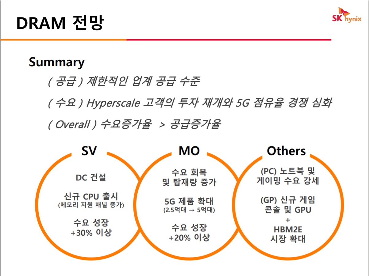 주주환원 정책이 삼성전자에 비해 아쉽기는 하네요. 연구원님께서는 반도체만 본다면 삼성전자보다 위라고 평가하셨는데 각 사에서 발표한 대로 DRAM의 공급량이 제한적이라면 상당히 설득력 있게 느껴지네요.