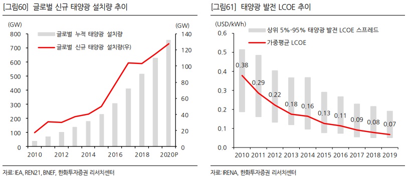 신재생에너지는 온실가스가 발생하지 않을 뿐만 아니라 지속적인 발전단가 하락으로 타 에너지원 대비 가격 경쟁력이 높다. 또한 코로나로 경기가 침체되자 각국은 경기 부양책의 일환으로 신재생에너지에 대한 투자 계획을 발표하고 있다.
