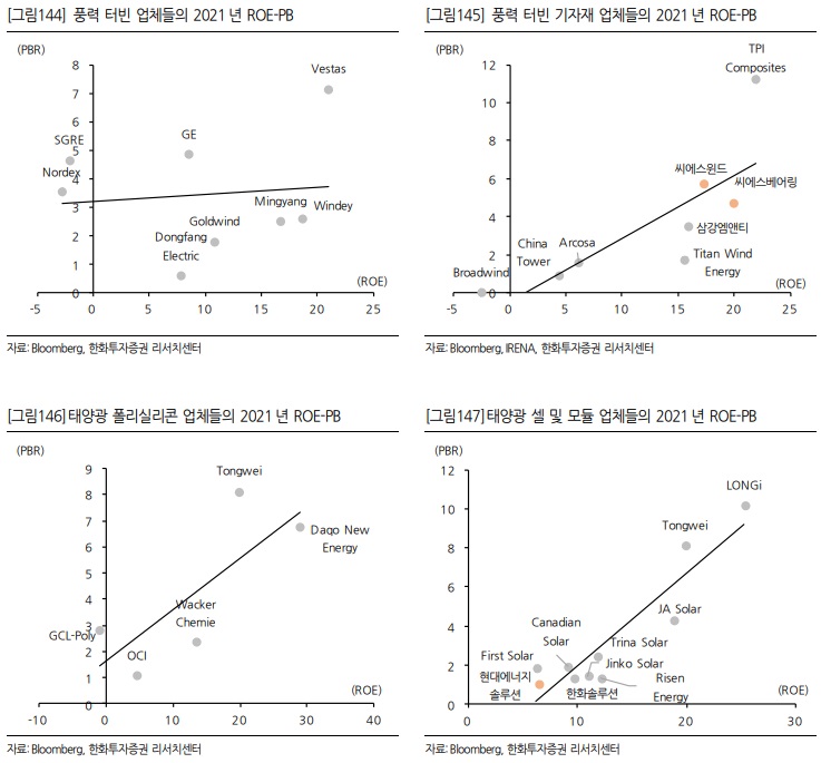 분석 대상에 포함되지는 않았으나, 신성이엔지, 스페코, 두산퓨얼셀 등도 신재생에너지와 관련해 관심있게 지켜볼 만한 기업이라고 판단한다. 특히 태양광과 관련해 국내 대장주인 한화솔루션은 추후 당 리서치센터에서 분석대상에 편입 예정이라, 본 분석에서는 제외했다.